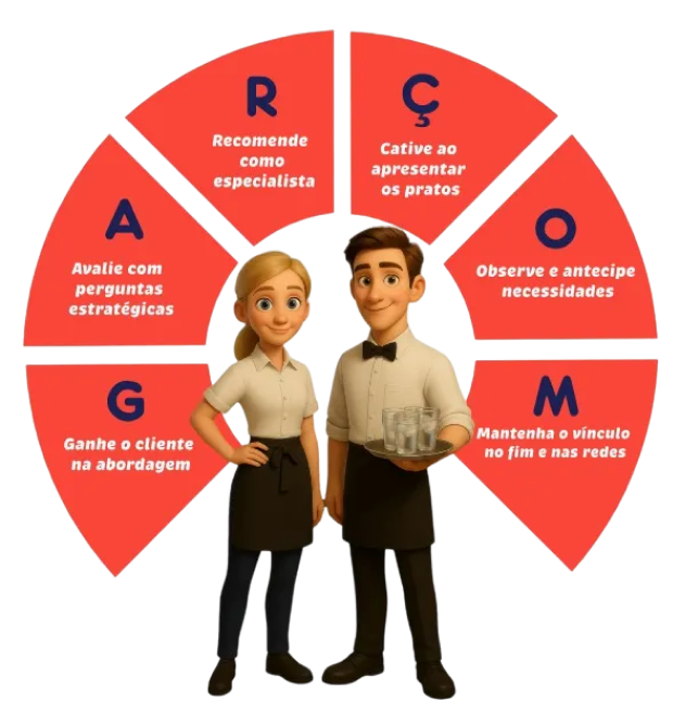 As vantagens são claras: aumento do ticket médio, mais vendas extras, clientes mais satisfeitos e fiéis, melhor reputação para seu negócio, e uma equipe mais motivada e engajada com os resultados.